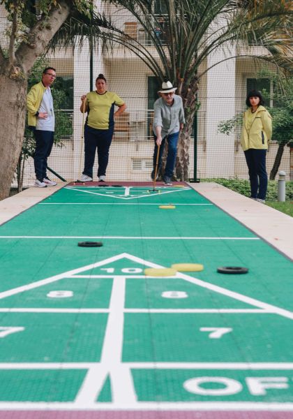 Naš shuffleboard teren, smješten između teniskog terena i PADEL terena, nudi zabavno iskustvo za sve generacije.